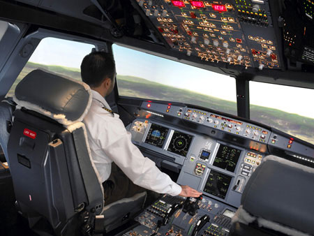 Experimenta el vuelo de un avión comercial en simuladores de vuelo profesionales.